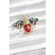 Pembe Ve Yeşil Zirkon Taşlı 3d Eriyen Kalp Figürlü Gold Renk Kadın Broş