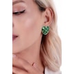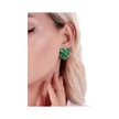 Bhs Life 925 Ayar Kadın Gümüş Kalp Yeşil Desenli Seramik Küpe Yeşil