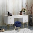 Gazzini Furniture Diana Slim Line Luxury Havlu Kumaş Silindir Dekoratif Makyaj Masası Puf Beyaz