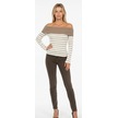 Biçomi Çizgili Madonna Yaka Kaşkorse Bluz Bej A844 Bej