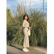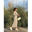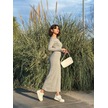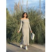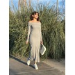Biçomi Madonna Yaka Uzun Elbise Şardonlu Kumaş Gri W3753 Gri