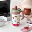 Big Mac Buz Kupası 316 Paslanmaz Çelik Yalıtım Kupası Büyük Kapasiteli Sevimli Kız Yüksek Yüzlü Pipet Kahve Fincanı Kabarcık Dalga Noktası-1000ml