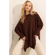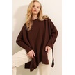Bigdart 15783 Yırtmaçlı Panço Kazak - Kahverengi 001