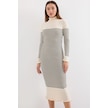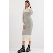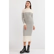 Bigdart 15893 Çizgili Uzun Triko Elbise - Ekru 001