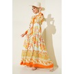 Bigdart 2423 Otantik Desenli Elbise - Y.Turuncu