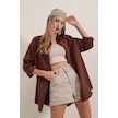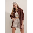 Bigdart 3900 Oversize Uzun Basic Gömlek - Kahverengi 001