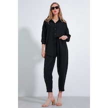 Bigdart Kadın Kahverengi Oversize Keten Alt Üst Takım 6622 6622bgd19-002-14380 001