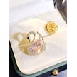 Pembe Ve Yeşil Zirkon Taşlı 3d Eriyen Kalp Figürlü Gold Renk Kadın Broş