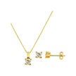 Bilezikci 14 Ayar Klasik Tektaş Altın Kolye Küpeli Set