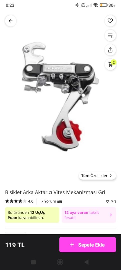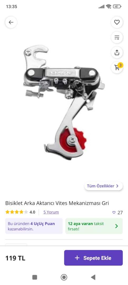 Bisiklet Arka Aktarıcı Vites Mekanizması Gri