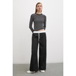 Bisiklet Yaka Çizgili Bluz Siyah Siyah
