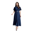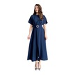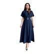 Bisiklet Yaka Pileli Yarasal Kol Kemerli Önden Yırtmaçlı Midi Boy Elbise Lacivert