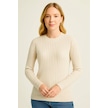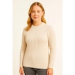 Bisiklet Yuvarlak Yaka Triko Kazak Pamuklu Kalın Fitilli Dokuma, Regular Fit Uzun Kollu Kışlık Model - Bej Bej