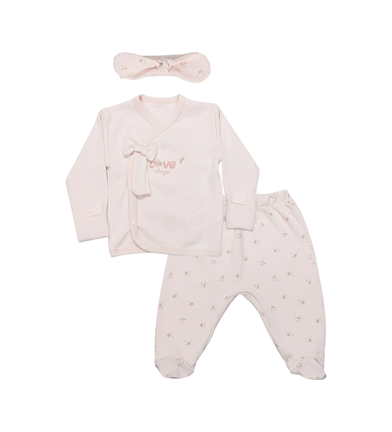 Bistyle Organik 3'lü Zıbın Takım Grow İn Love Pembe - Ekru