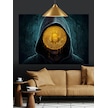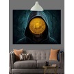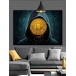 Bitcoin Sembolü Kapüşonlu Gizem Dekoratif Kanvas - Mdf Ahşap Tablo
