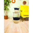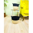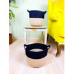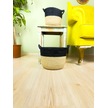 Bitki Tasarımı Düzenleyici Kulplu Üstü Siyah Şeritli Doğal Örgü Sepet İkili Set Orta-küçük