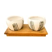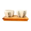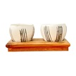 Bitki Tasarımı Ev Dekorasyon Aksesuar Bej Çizgili Eskitme Toprak Saksı İkili Ahşap Tabanlı Çiçeklik Saksı Saksılık 0,65 L
