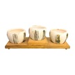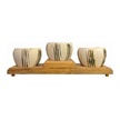 Bitki Tasarımı Ev Dekorasyon Aksesuar Bej Çizgili Eskitmetoprak Saksı Üçlü Ahşap Tabanlı Çiçeklik Saksı Saksılık 0.9 L