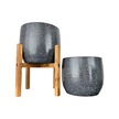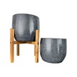 Bitki Tasarımı Ev Dekorasyon Aksesuar Gri Granit Toprak Saksı Saksılık Salon Çiçeklik İkili Set Ayaksız - 4 Ayaklı- 19 Cm