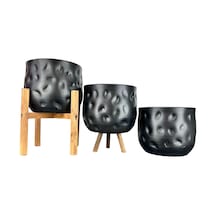 Bitki Tasarımı Ev Dekorasyon Aksesuar Siyah Desenli Toprak Saksı Saksılık Salon Çiçeklik Üçlü Set 19 Cm