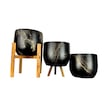 Bitki Tasarımı Ev Dekorasyon Aksesuar Siyah Üzeri Gold Mermer Efektli Toprak Saksı Üçlü Set 19 CM