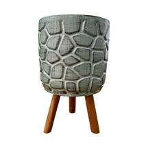 Bitki Tasarımı Ev Dekorasyon Yeşil Eskitme Taş Desen Beton Saksı Ayaklı Çiçeklik Saksılık