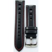 Bizon Siyah Deri Saat Kordonu 24Mm Kırmızı Dikişli Delikli Kayışı