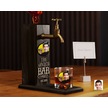 BK Gift Kabartmalı Karikatür Figürlü Musluklu Siyah Ahşap İçki Standı ve Viski Bardağı Hediye Seti, Arkadaşa Hediye, Sevgiliye Hediye-1