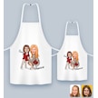 Bk Gift Kişiye Özel İkili Anne Kız Karikatürlü Mutfak Önlüğü Seti-4, Anneye , Anneler Günü leri