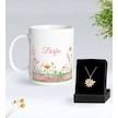 Bk Gift Kişiye Özel İsimli Çiçek Tasarımlı Beyaz Kupa Ve Papatya Kolye Hediye Seti - 14, Sevgiliye Hediye, Anneye Hediye, Arkadaşa Hediye Kobitmeyenco