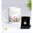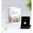 Bk Gift Kişiye Özel İsimli Çiçek Tasarımlı Beyaz Kupa Ve Papatya Kolye Hediye Seti - 5, Sevgiliye Hediye, Anneye Hediye, Arkadaşa Hediye Kobitmeyencom