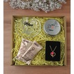 Bk Gift Kişiye Özel İsimli Dtf Cam Kahve Fincanı & Türk Kahvesi & Aşk Çiçeği Kalp Kolye & Gümüş Metal Kutuda Kokulu Mum Hediye Seti-3, Sevgiliye Hediy