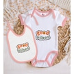 Bk Kids Good Vibes Tasarımlı Pembe Bebek Body Zıbın Ve Mama Önlüğ Çok Renkli