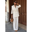 Blazer Ceketli Çizgili Keten Takım 10186 Natural