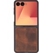 Bloomcase Flex Saddle Brown Hakiki Deri Samsung Galaxy Uyumlu Z Flip 7 Kılıf 6.9"-4.1" Kahverengi