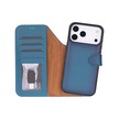 Bloomcase Magic Wallet Midnight Blue iPhone Uyumlu 17 Pro 6.3" Hakiki Deri Çıkarılabilir Cüzdanlı Telefon Kılıfı Mavi