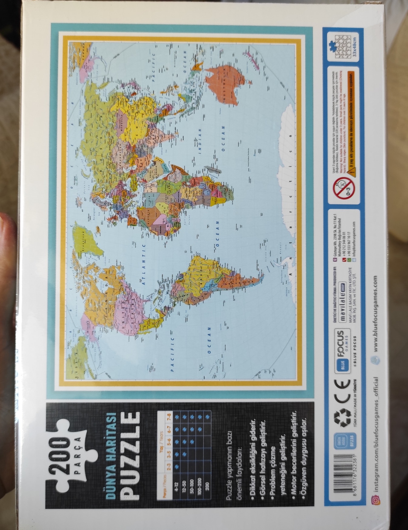 Blue Focus 200 Parça Dünya Haritası Puzzle