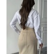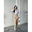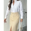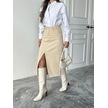 Blue Marlın Kadin Taş Etek Ucu Kesik Ön Yirtmaç Keten Etek Krem