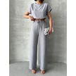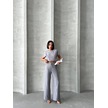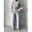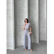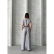 Kadın İspanyol Paça Pantolon Uzun Kollu Parmak Geçirmeli Crop Takım Gri