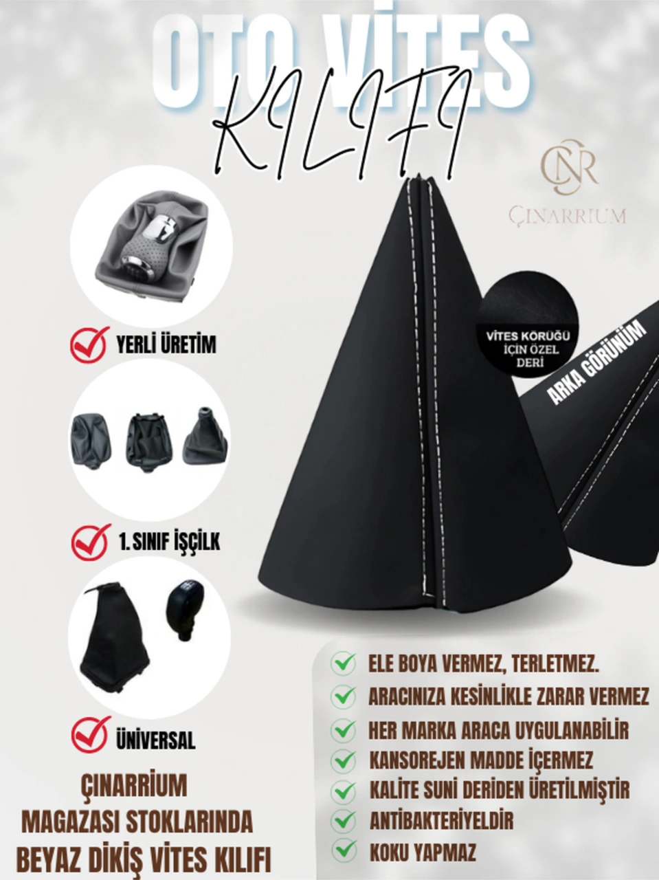 Bmw E87 Siyah Deri Prime Tasarım Beyaz Spor Dikiş Vites Körüğü