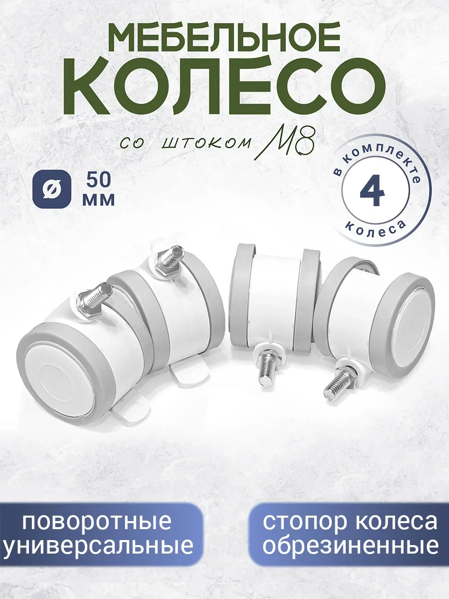 Bo-ny Mobilya Tekerlekleri M8 Kauçuk Kaplı 4 Adet 221394343 Beyaz