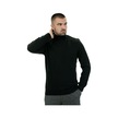 Erkek Yarım Boğaz Triko Kazak Yumuşak Dokulu Pamuklu İnce Dokuma, Uzun Kollu Rahat Regular Kalıp - S Siyah