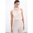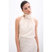 Boğazlı Kolsuz Bluz - Bej-135951 Bej