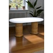 Bohem İskandinav Masa Sandalye Takımı 4 Adet Polo Sandalye Mdf Beyaz Oval Masa Modern Şık Kahverengi
