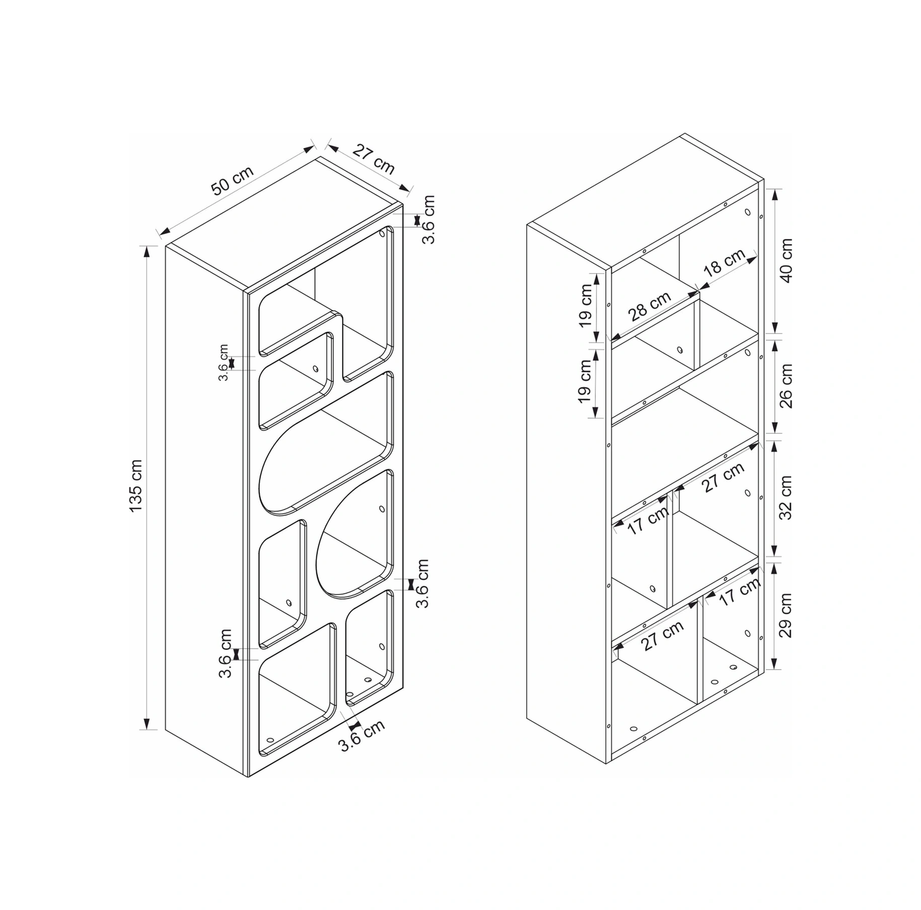 Bohem Kitaplık 135 Cm Mebran - Beyaz Beyaz