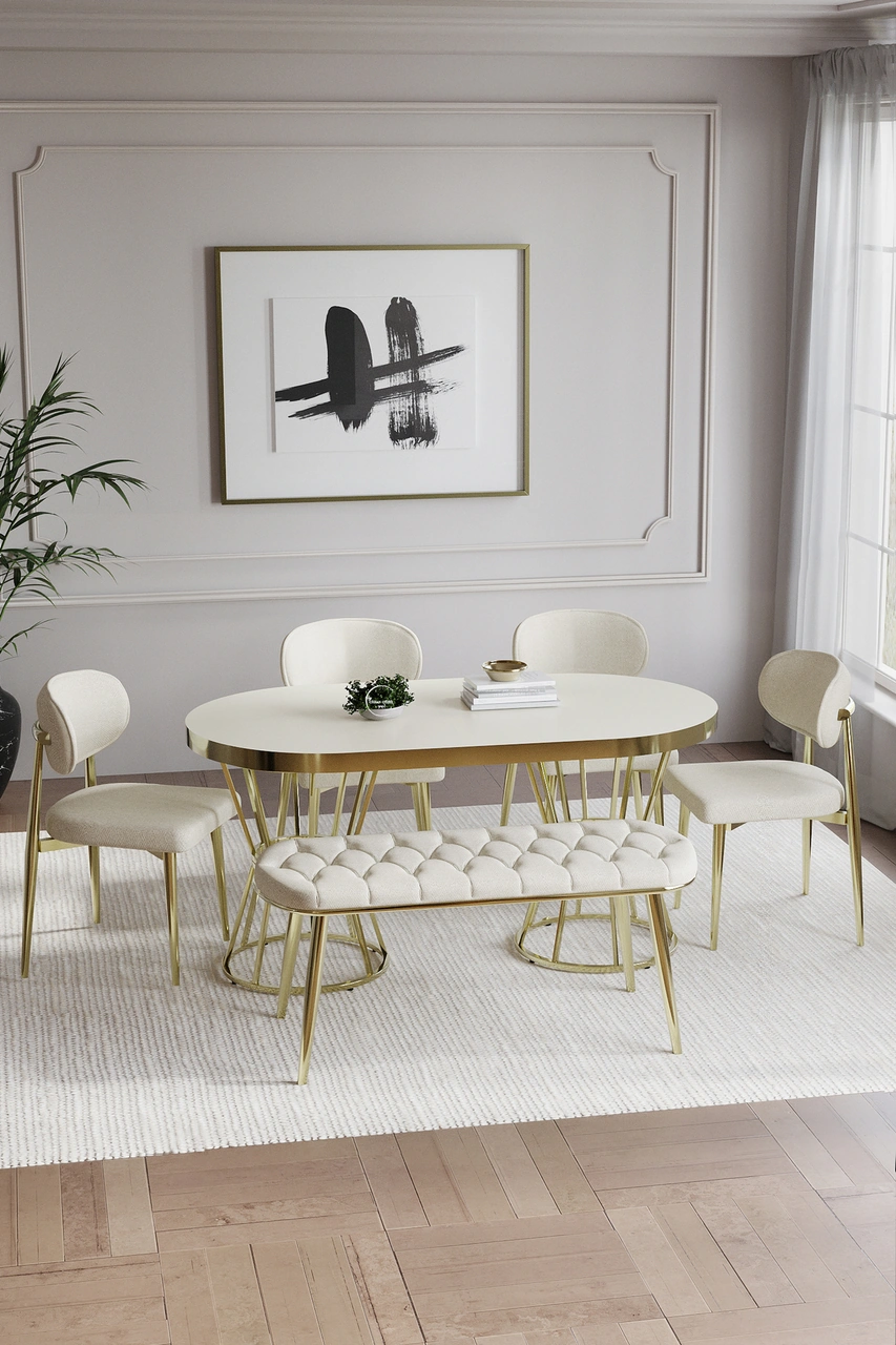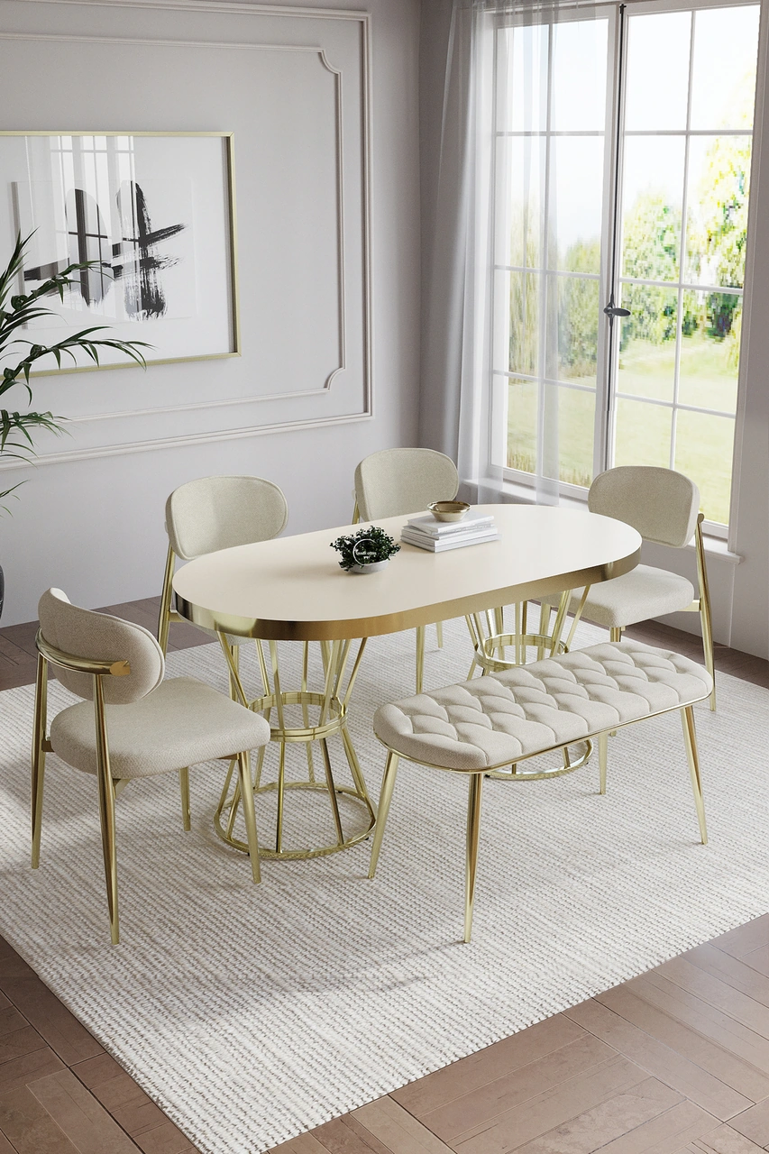 Bohem Polo Mutfak Masası Takımı 6 Kişilik Bencli Gold Krem