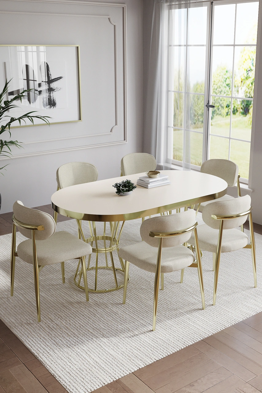 Bohem Polo Mutfak Masası Takımı 6 Kişilik Gold Krem
