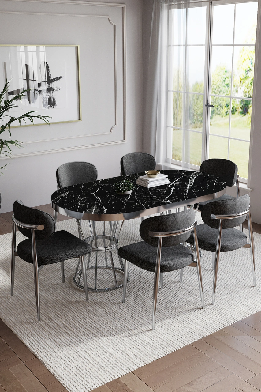 Bohem Polo Mutfak Masası Takımı 6 Kişilik Gümüş Gri