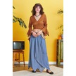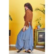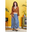 Bohem Tarz Katlı Salaş Beli Lastikli Uzun Etek İndigo