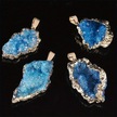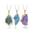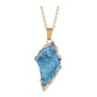 Bohem Tarzı Doğal Akik Geode Kolye, Altın Kenarlı Renkli Küme Doğal Taş Kolye Çok Renkli